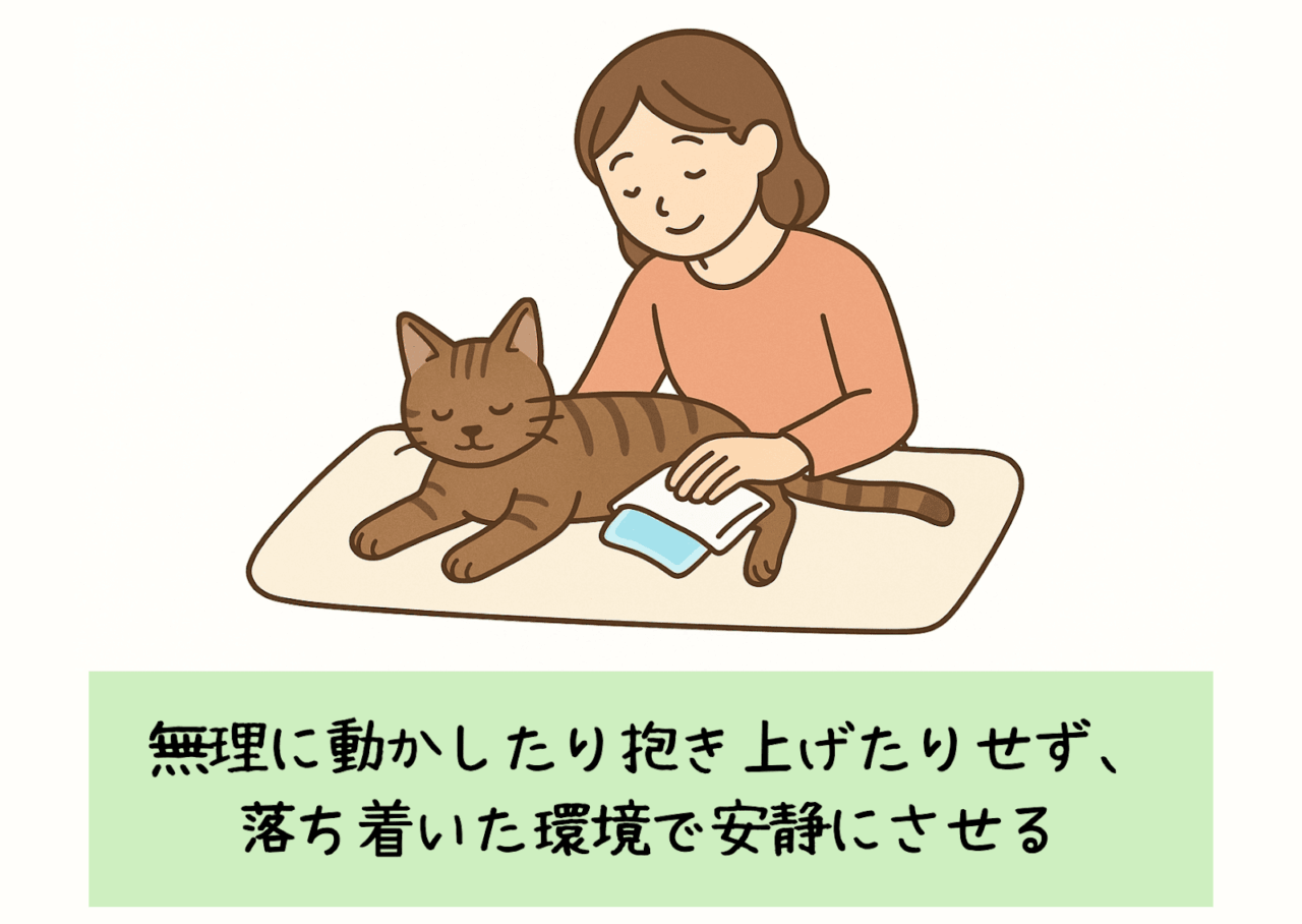足をかばって歩いている、動きが鈍くなった、ジャンプをしなくなったといった変化が見られたら、まずは無理に動かしたり抱き上げたりせず、落ち着いた環境で安静にさせることが大切です。
