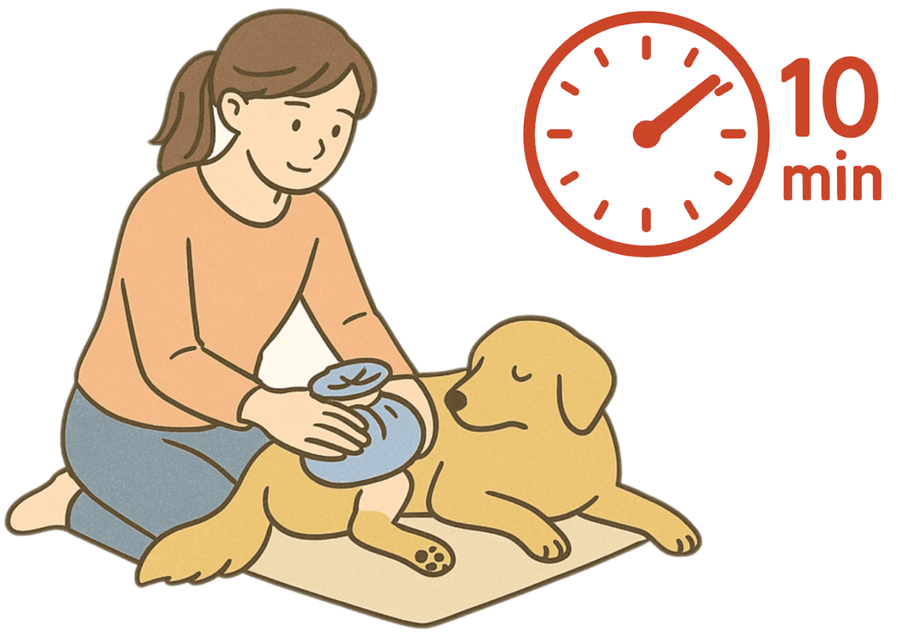 ・1回の冷却は10分以内を目安にし、様子を見ながら時間をあけて繰り返しましょう。